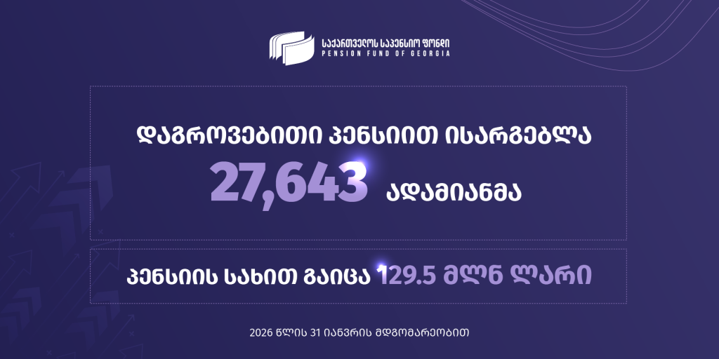 საპენსიო სქემაში გაწევრიანებულ მონაწილეთა რაოდენობა 1 მილიონ 715 ათასი ადამიანია. 2026 წლის 31 იანვრის მდგომარეობით, დაგროვებითი პენსიით ისარგებლა 27,643 – მა პირმა, მათზე პენსიის სახით გაიცა 129,544,402.18 ლარი. იანვრის ბოლოსთვის საქართველოს საპენსიო ფონდის აქტივებმა 8.5 მილიარდ ლარს გადააჭარბა, ხოლო დაგენერირებულმა ამონაგებმა 2.4 მილიარდ ლარს მიაღწია.